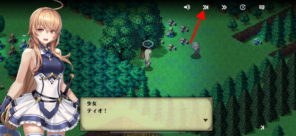 ストーリーが始まりますので右上の矢印でスキップします。